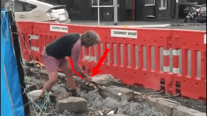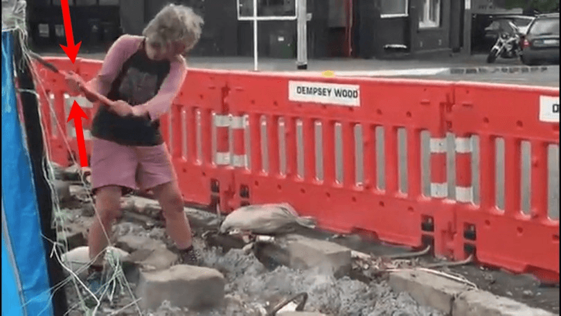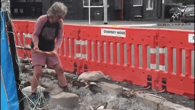Camped out on the corner of Richmond Road and Surrey Crescent, Prager is putting into action her promise to stop Auckland Council from making roads safer for pedestrians and cyclists. Her target? A kerb recently constructed on the side of the road, apparently to create a safe cycleway through Grey Lynn. Prager said no, that won’t do, and set about literally dismantling it with the help of a sledgehammer and crowbar.