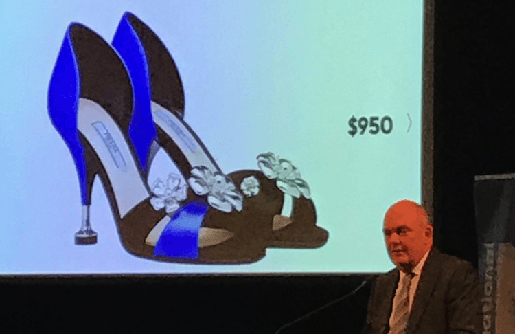 The options, with a $950 price tag, flashed up on the screen behind him. Then she flashed up the sales docket, which suggested she’d bought the shoes using his credit card.