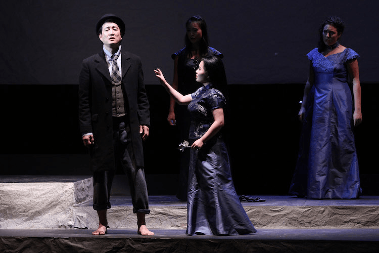 The Bone Feeder was inspired by the story of a ship in 1902 carrying the bones of 500 Chinese miners being repatriated to China from the goldfields, wrecked off the coast at Hokianga. The opera explored dual worlds: Māori and Chinese, past and present, reality and magic. The music, especially, made the most of all that with an intricate and very beautiful fusion of Māori, Chinese and European instruments and musical styles. There were many ghosts.