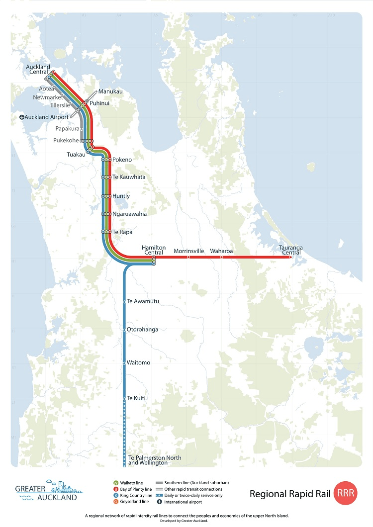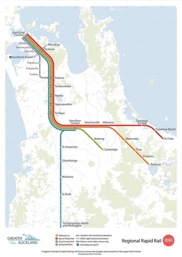Regional Rapid Rail (RRR) is the latest invention of Greater Auckland, in particular of its researchers/planning visionaries Harriet Gale and Nicolas Reid. It’s a three-stage proposal to establish fast and frequent rail links through the region, but its purpose is not simply to give us more trains. RRR is proposed as a platform for regional economic development. The Green Party has signalled its support and others may follow – the same group came up with the Congestion Free Network, which is now essentially Labour policy.