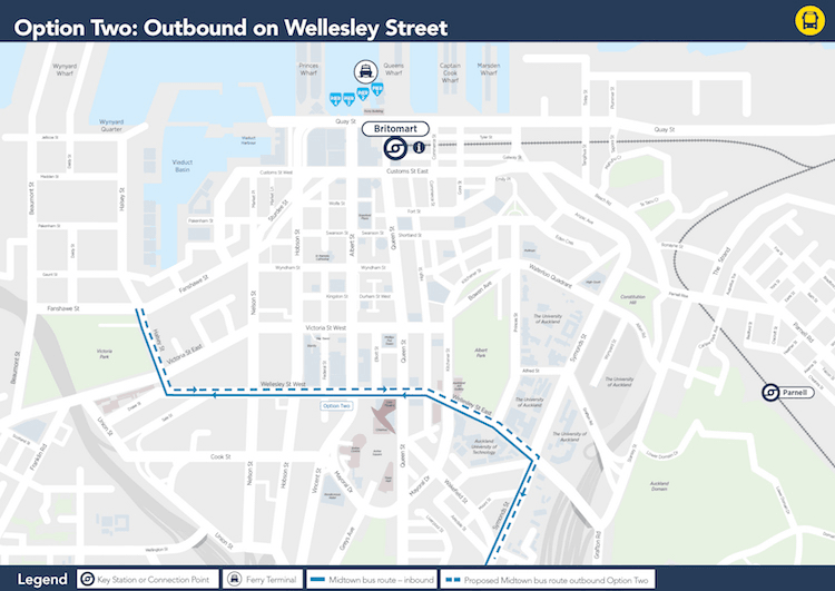 So, Option 2, which has the buses running both ways the length of Wellesley St? The listed benefits are that it’s the simplest and has good access to the city centre and the universities.
