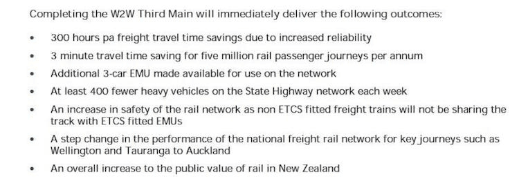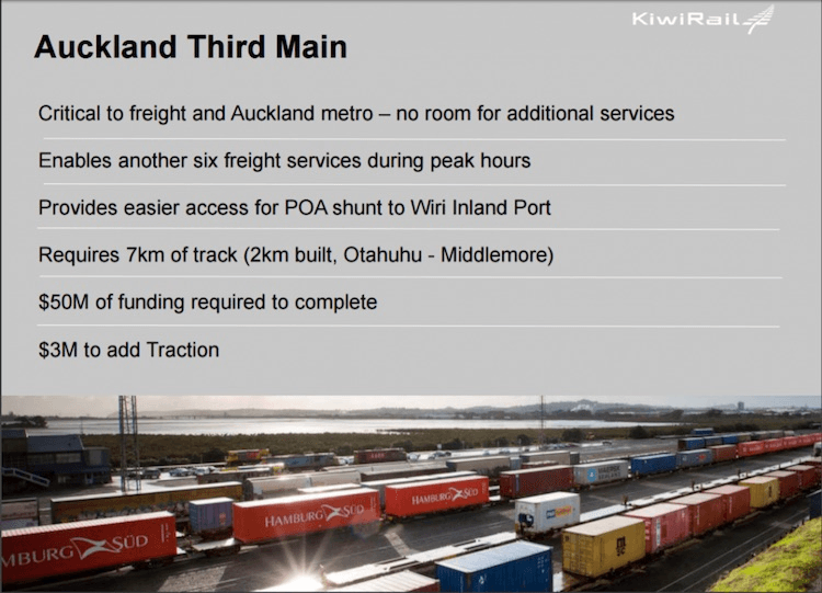 No. The third main is expected to cost a mere $50-58 million. The benefit-cost ratios are redacted in the report as released, but it says, “This option is economically efficient, as the forecast benefits significantly exceed the expected costs.” The proposed East-West Link, a new highway, is also supposed to enable freight movement in the Onehunga area and is expected to cost between $1.5-1.8 billion.