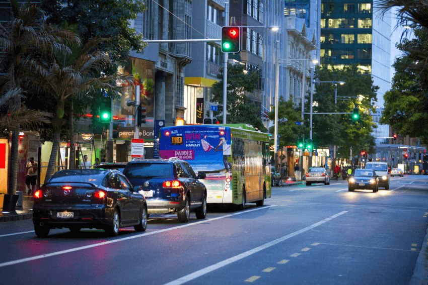 Traffic on Queen street in downtown Auckland (photo: Getty Images).