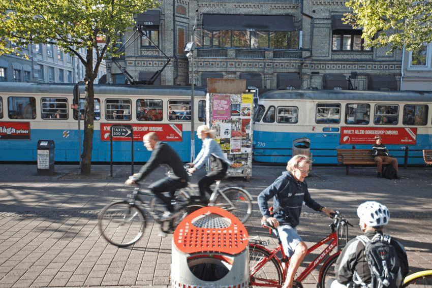 Cyclists, pedestrians, and public transport in Gothenburg (photo: Getty Images).