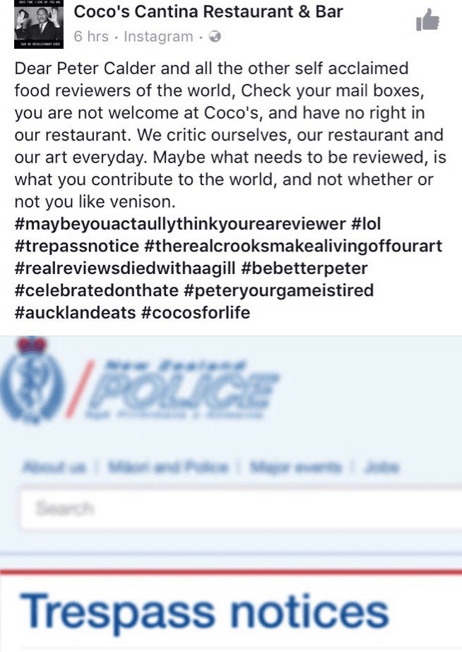 And, problematically for Coco’s, if they ban all the critics they recognise, they’ll risk dropping out of the conversation, and the ratings and awards, and they’ll be written about by inexperienced reporters – the ones who really may not know what they’re talking about. It’s called jabbing yourself in the eye with your own fork.