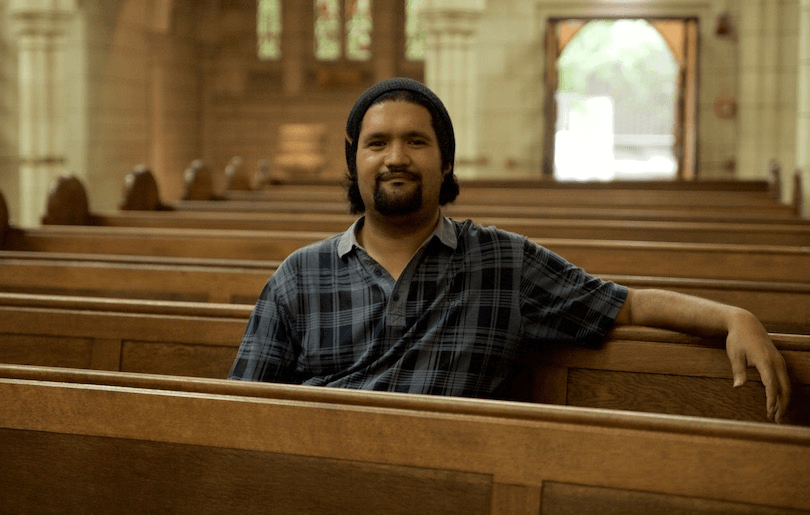 His gappy grin beaming across the street, Rawiri Sears Ngatai was waiting at the top of the stone steps of St Matthews-in-the-city, the rehearsal space for the Hobson Street Theatre Company. “Come on e hoa!” he says with warmth as he welcomes me up the stairs and into the church. Waiting are Joeli Thacker, initially quiet and shy, and the giant Kelly Tunui, who greets me with a hongi and a joke which makes everyone laugh – the class clown.