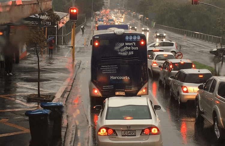 That’s rapid transit in action, proving its worth. So why, if we look west, did the widening of the northwest motorway not include a dedicated busway? That one’s on NZTA, the government’s transport funding and planning agency. The word for that decision is: incompetent.