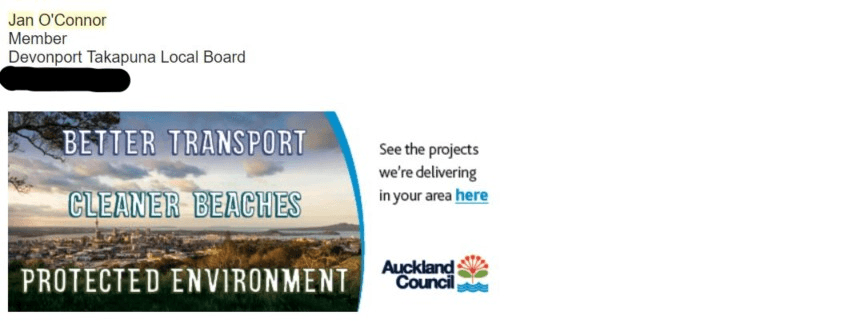 - At some point – and this is important – one of this trio saw a version of the email that contained, below its final full-stop, an Auckland Council email footer.