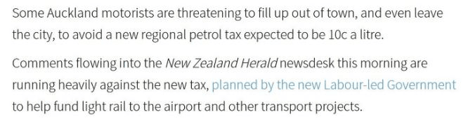 Labour has announced it will raise taxes on fuel in Auckland by roughly 10c a litre, and everyone is freaking out. People are screaming that they won’t pay an extra cent in tax to fix Auckland’s broken public transport system, which is broken because for decades people have been screaming that they won’t pay a cent more tax to fix it. Many of them would rather leave the city than pay the cost of an extra coffee every week for something resembling a functional rail network.