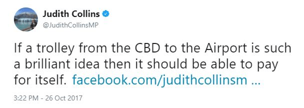 If you’re Judith Collins, and you oppose “trolleys” going to the airport, you need to remind yourself your own Government supported “trolleys” to the airport in its transport plan for Auckland. The only difference between Labour’s plan and your Auckland Transport Alignment Plan (ATAP) is the timeframe. ATAP set the finish date on light rail at roughly 30 years from now. Labour wants to fast-track it.