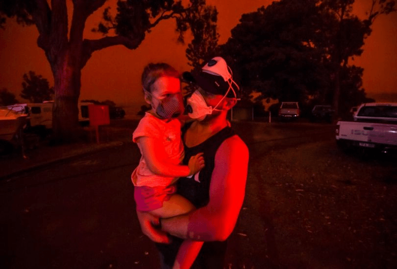 In the Mallacoota fire, people evacuated while they could but when the fires swept toward the roads and cut off the exits, many were trapped. Consider a typical summer’s day: an Australian beach overly crowded with young families and holiday makers. Now see a horse, wide eyed and bowed in panic. Now see a wall of red marching toward you. You might have seen the photo. Those who couldn’t escape were stranded on the beach, huddled together. The symmetry with the Dunkirk Landing was too much for some commentators to resist as the fire moved much closer to the sea than it was ever expected to. Fortunately sand doesn’t burn, but the flames spewed hazardous smoke and trapped everyone on that crescent of beach until the Navy came by sea to sweep them away to safety, horses and all.