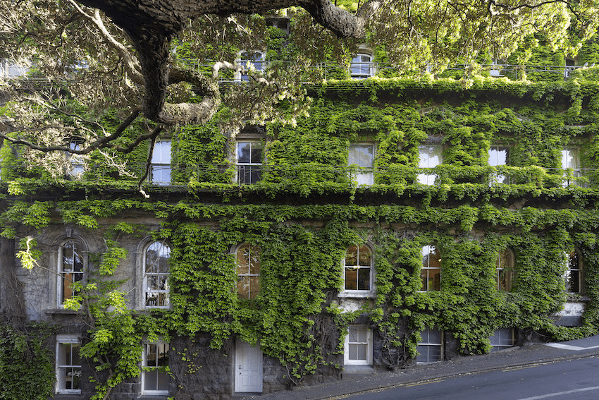 Among the British institutions transplanted to Victorian New Zealand was the gentleman’s club. The Northern Club was established in 1869. Since 1927, Virginia creeper has grown on the two street façades of the original building.