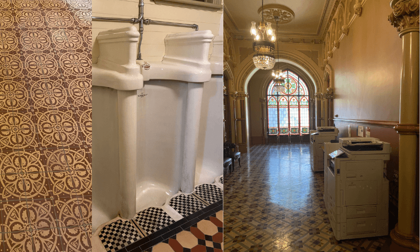 Apparently many passers-by assume that the ornate, pinkish building with the sweeping marble-ish stairs on parliament’s grounds is a church. No offence to the holy family, but this library is a lot more exciting. Welcome to the Parliamentary Library building, commissioned by Premier Seddon in 1897 and designed by Thomas Turnbull in the gothic revival style (defined by medieval-esque features like sweeping arches, flourishes, and gargoyles (see below)).