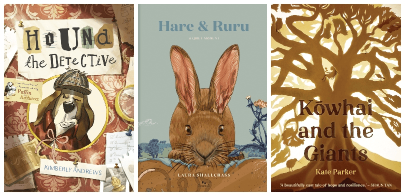 Kōwhai and the Giants would be my third pick. Think The Lorax but instead of wacky colour and bouncing verse, it’s all sombre silhouettes and sepia tones: the illustrations, we’re told, were “created from hand-cut paper, placed in a plywood box and lit from behind”. It’s a piece of art for sure, but without a wink of lightness. And I wish they’d given the poignant final page room to breathe, perhaps with a blank spread, or an illustrated spread with no words, rather than flipping us straight to the postscript about planting native trees.