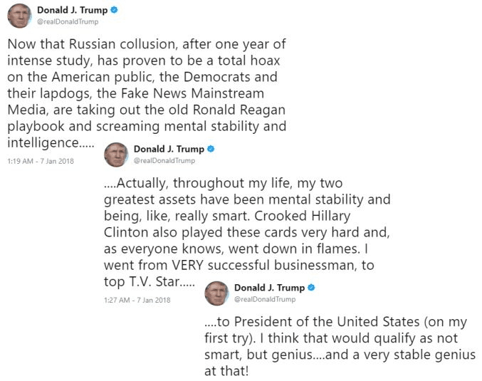 It’s hard to know what Trump coverage to pay attention to. It’s so relentless, and some of what happens is bizarre and frightening; but because of this much of the coverage occurs in a state of extended hysteria: even the banal is elevated to the status of unprecedented outrage. A few days ago Trump took credit for the fact that there were no domestic air crashes in the US during his first 12 months in office. It’s the sort of silly thing politicians the world over congratulate themselves for every day, and always have done, and no one cares or even notices, but Trump’s tweet touched off another global wave of frenzied condemnation: it was yet more proof of his evil and his madness.