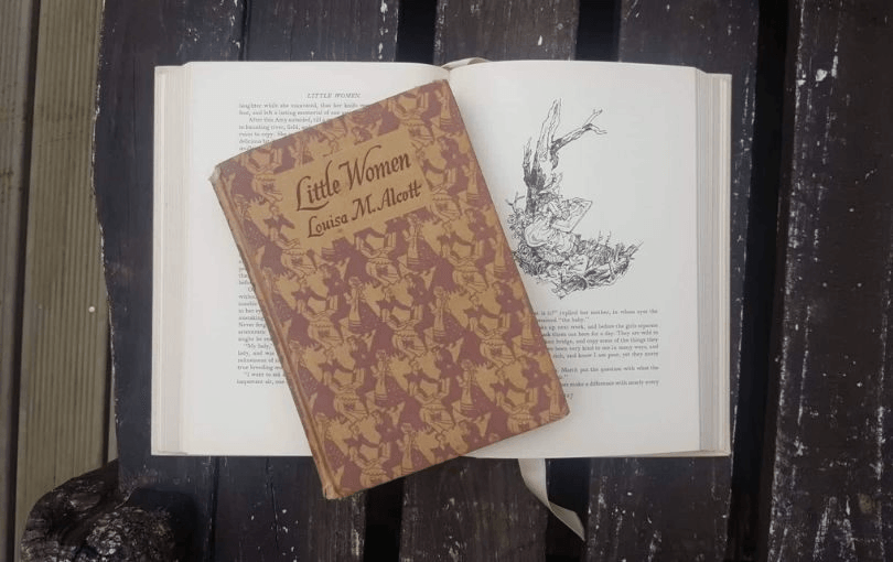 I own two copies of Little Women. One is bound in white leather, has gilt edges, a gold filigree pattern on the front, and the heft of a family Bible. Each copy of this edition is made to order. It arrived in the mail on my 25th birthday – a present from an ex-boyfriend who’d once noticed that every time I spoke about Little Women I put my hand over my heart and sighed deeply. He’d planned to buy it for me when we were together, and though we’d broken up before my birthday he still wanted me to have it. When I saw what he’d given me, I hovered my finger over his name in my contacts list, wondering if we should get back together. As for my other copy, I don’t remember who first put it into my hands, but I remember reading it in bed at seven or eight years old, reading it on the lawn, and on the library bean bags, and in a tree – which was disappointingly uncomfortable, but Jo read in a tree so I stuck it out. I kept a list of words I didn’t understand and would take it to my parents the next day. “What does it mean to ‘put on airs’?” I try not to open this copy anymore because the spine has broken and it flaps open, revealing the gum binding, and the pages feel like they could easily tear away if I wasn’t careful turning them. Last year I rented Little Women as an audiobook for my commute, but had to stop because I was getting to work with splotchy eyes from an hour of weeping in my car.