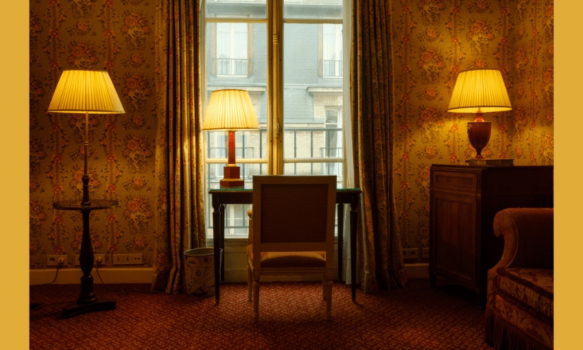 The lift shudders. I’m discharged on the third floor and the depleted glory of my own room, where the wet courtyard greenery reaches up to the balcony. Elise has stalked off to reception in a cloud of scent. I collapse in an armchair, briefly ecstatic. Then it occurs to me that I forgot to ask for a look at the bathroom. Idiot. Or take a photo. What was I thinking? Not a single one. I’m furious and anguished; the travel, the jetlag, is again catching up with me.