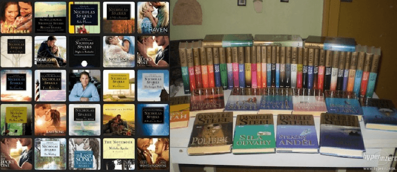 Danielle Steel lives in a 55-room mansion built by an old sugar tycoon and her writing desk is literally a giant sculpture of three of her books. She sounds like a legend. Sparks, meanwhile…well, let me check…