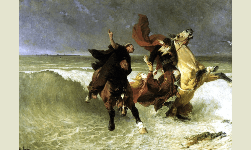 Gus insinuates himself into Ella’s life and, longing for friendship, she chooses to look past his puzzling behaviour and unsettling intensity. It’s Gus who gives Ella the language to name the black horse, when he raises the figure of the kelpie, the Scottish water horse, a beautiful and deadly mythological creature known for enticing children to mount it and then galloping them under the surface of lakes and rivers to devour them. It’s Gus who puts into her mind the idea of a thinness between worlds, “a veil … between order and calamity”.
