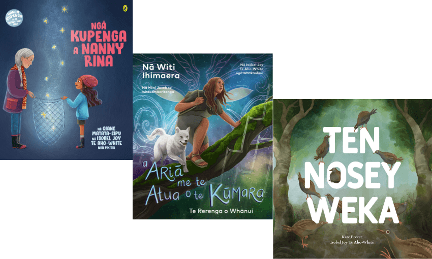Ngā Kupenga a Nanny Rina by Qiane Mataa-Sipu illustrated by Isobel Joy Te Aho-White ($21, Penguin); A Ariā me te Atua o te Kūmara by Witi Ihimaera and illustrated by Isobel Joy Te Aho-White and translated by Hēni Jacob ($25, Penguin); and Ten Nosey Weka by Kate Preece, illustrated by Isobel Joy Te Aho-White ($22, Bateman Books) are all available to purchase through Unity Books.