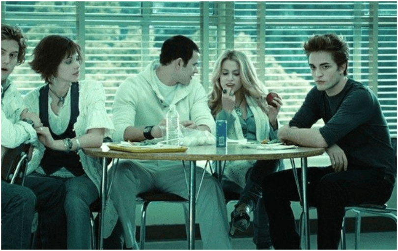 Here’s one particularly gnarly complicating factor: Edward can read minds, which means that in each scene he operates as a prism, a walking Twitter feed, constantly refracting for readers the plans and motivations of those around him. This is exacerbated by the fact that he’s anxious as hell and his role within his family is to watch for danger – for humans who might figure out the vampire bit, or other vampires who might be a threat – so basically he never stops doomscrolling through the minds of the stupid, selfish and slow. It pisses him off, by which I mean people piss him off. “Sheep-like,” he calls them. “Irritating.” He says: “I tried to block the inane chatter out of my head before the petty and the trivial could drive me mad.” (Parents, say it with me … )
