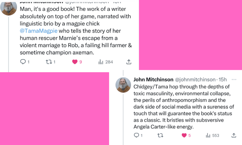 Books editor Claire Mabey speaks with Catherine Chidgey, whose novel about a toxic marriage, as narrated by a magpie called Tama, won the Jann Medlicott Acorn Prize for Fiction at the Ockham New Zealand Books Awards 2023.