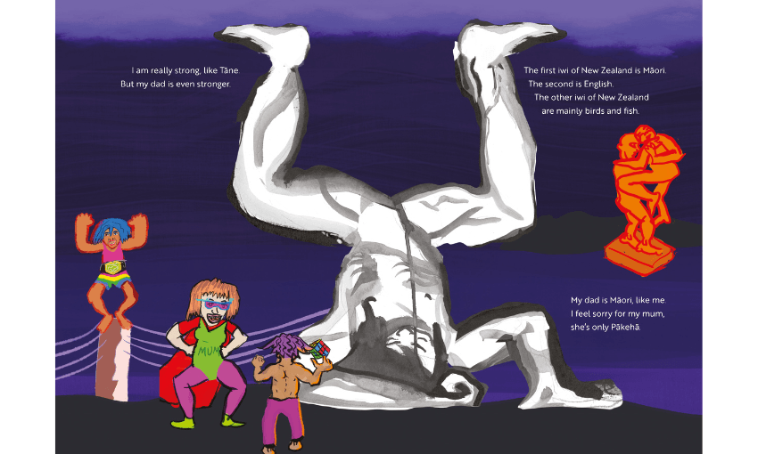 I hope it finds its readers and I hope they laugh and understand its spirit. I hope it generates conversation between kids and adults about identity and belonging and the nature of authority. One of the best moments Tokerau included in the book (according to me, ha) is the character of Mum – a joyful wrestler, even if “she’s only Pākehā.” I hope the book also helps non-Māori kids and adults think about how to “be” in Aotearoa, how to move towards a strong identity by getting in behind self-determination and tino rangatiratanga.