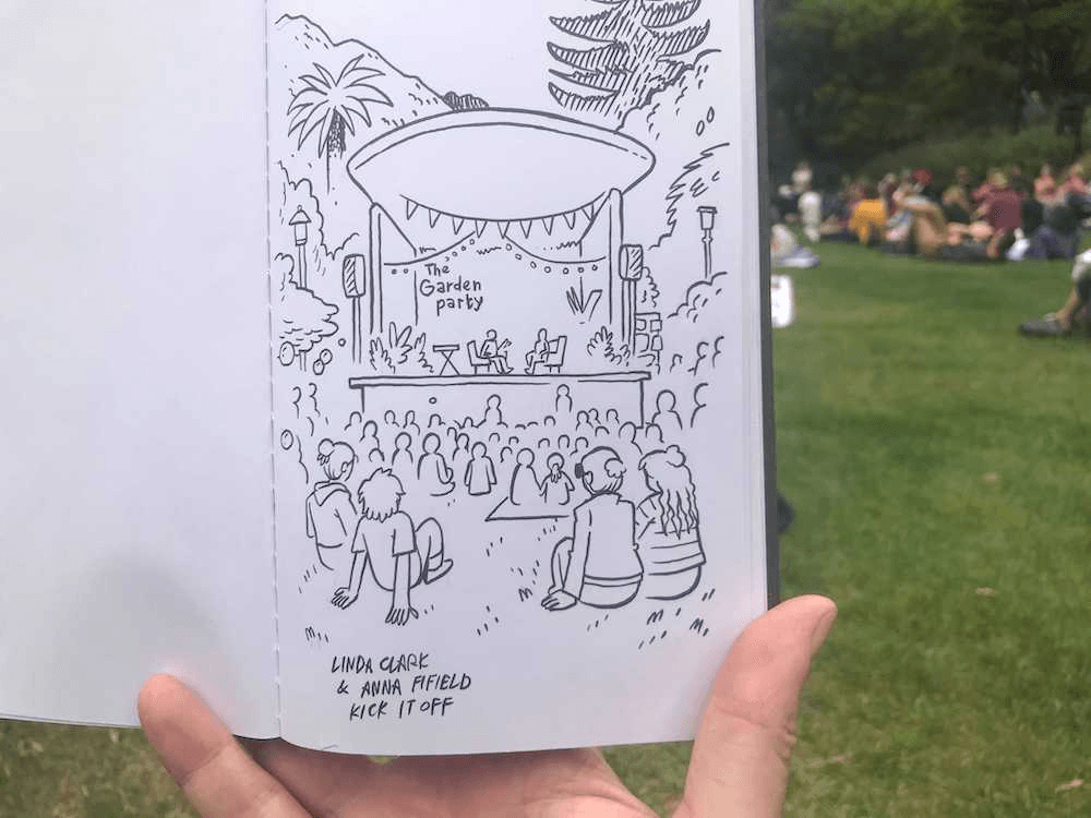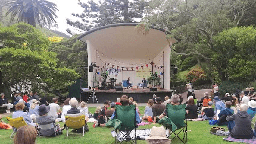 We’re looking forward to a packed schedule today. Right now Dominion Post editor Anna Fifield is discussing her new job and her long career as a foreign correspondent with Linda Clark. At 11am in the Treehouse visitor centre artist Karl Maughan will be talking about his love for painting gardens and his new book, a collection of 150 of his greatest gardenscapes. Later this morning cook Annabel Langbein will be talking with Beth Brash, the programme director of Wellington on a Plate, and at 1pm comedian, actor and author Tom Sainsbury chats to Noelle McCarthy about his work. At the same time, in the Treehouse, gardening writer Matt Morris talks about his book, Common Ground: Garden histories of Aotearoa, a look at this country’s gardens and garden practices. At 2pm in the Treehouse, join actor Isobel MacKinnon for a reading of Katherine Mansfield’s classic short story The Garden Party. Then at 2.30pm, hip hop act Church & AP talk with The Spinoff’s Leonie Hayden, and play us some songs.