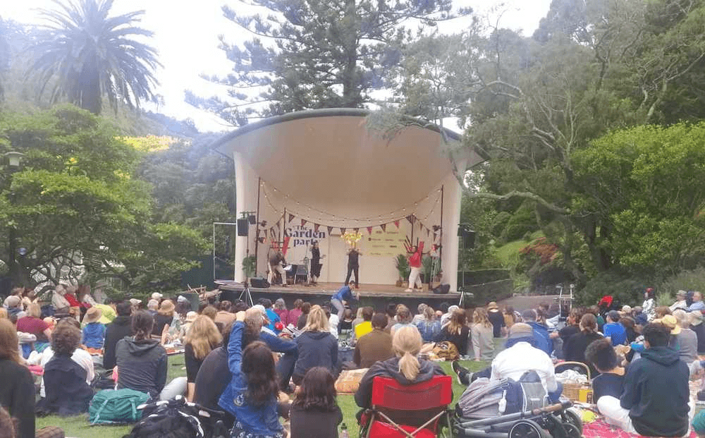 The sun is coming out, the vibes are good, and the Garden Party is underway at Wellington Botanic Gardens. I’ll be reporting all day from around the site, including the Gardens’ Soundshell, Treehouse Visitor Centre and the pop-up Roaming Hut, located just beside the Soundshell. Find out what’s planned for the day – almost everything entirely free – at the website here.
