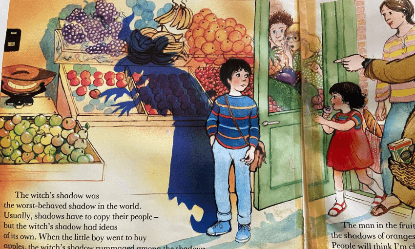 The witch in The Boy with Two Shadows (an altogether strange tale) is rambunctious, pushy and exploitative. When it’s time for her to go on holiday she asks a very good little boy (who is unnamed, which makes him a sort of everykid), to look after her shadow. The witch’s shadow is charming at first, doing such mild mischief as scrambling the shadows at the fruit and veg store. But before long the shadow gets bored and nasty: it bullies the dog’s shadow before turning on the boy’s own, scaring it so badly that it runs away.