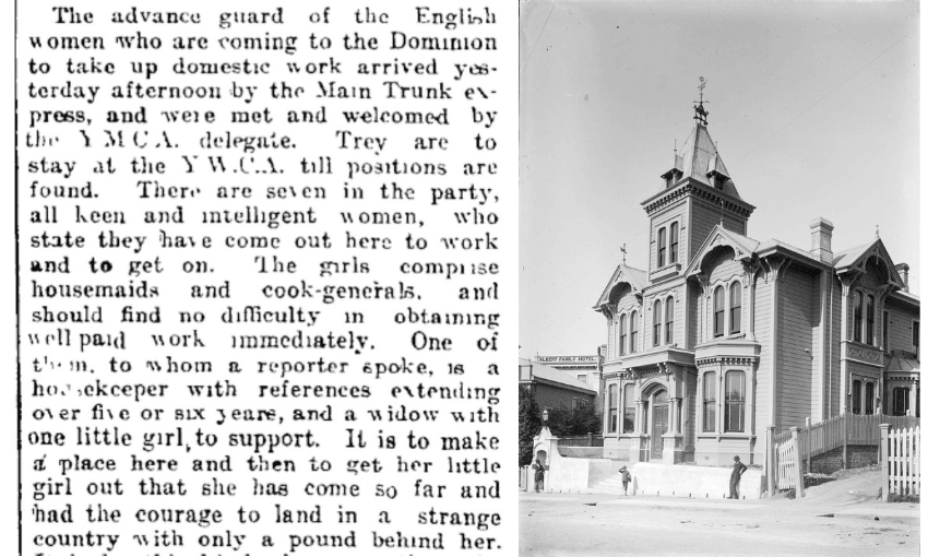 Over the next five years, 4500 women travel to Aotearoa New Zealand on the assisted immigration scheme to become domestic servants. They’re referred to as “good British stock,” shipped over to fill the shortage of help in the colony. They travel under the cloak of the Society for the Settlement of British Women, attracted with a free third-class passage and a stipend of two pounds. Upon arrival, they stay at YWCA hostels in Auckland and Wellington.