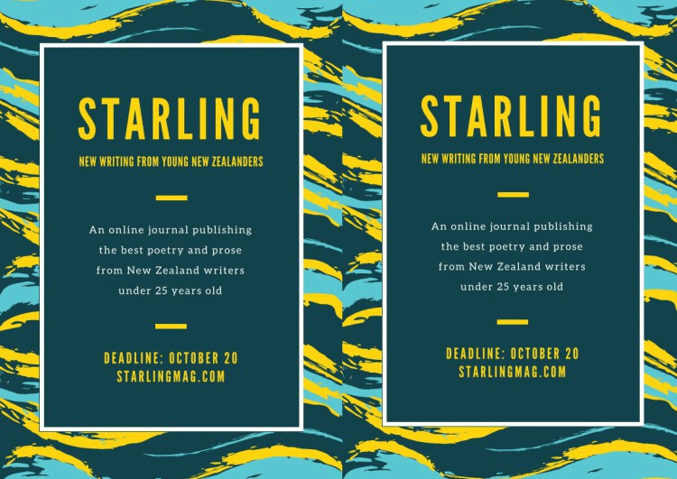 Now, as the founder and editor of the online journal Starling, I’m wanting to make that connection for the latest generation of young writers. Starling publishes two issues of poetry and prose every year at www.starlingmag.com. The deadline for issue five is October 20. Submissions are welcomed from all New Zealand writers under 25.