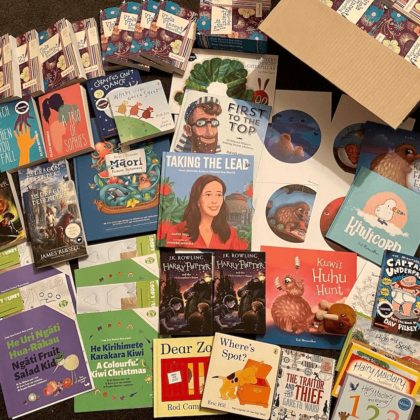 By the end of the first week of November, there were books on my desk, books in the boot of my car, books wrapped in courier bags – bright red, the colour of Christmas. There is a big, A3 format butterfly book, there is The Pōrangi Boy, a new novel by new writer Shilo Kino, there is Digger, an older novel by older writer Joy Cowley; there is Selina Tusitala Marsh’s Mophead and Margaret Mahy’s The Man whose Mother was a Pirate and Miriama Kamo’s The Stolen Stars of Matariki, and I’m stoked, and grateful, and – to be honest – a little overwhelmed. A woman posted 20 brand-new beautiful books in one package; when I emailed to thank her, she replied: “I’m a doctor at Starship Hospital, so I know how important books are, and how many kids are missing out.”