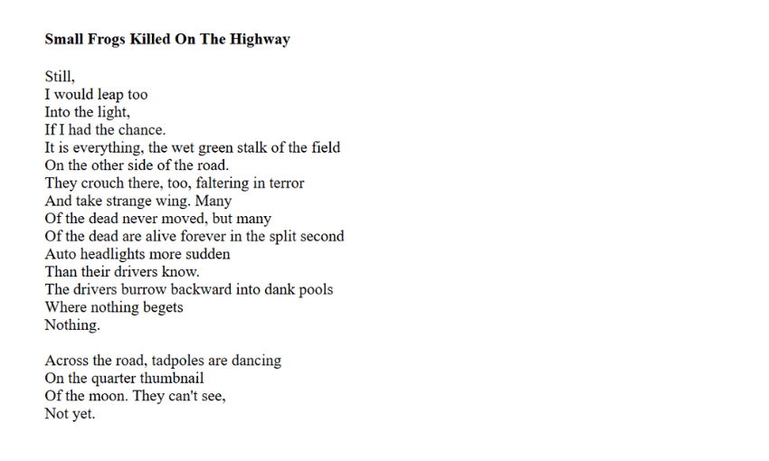 Maybe – and this is where I started to really pick up steam – poets are suffering a culturally specific, The-Body-Keeps-the-Score generational trauma. After all, wasn’t Frank O’Hara killed by a taxi? Randall Jarrell was also killed by a car, although there’s compelling evidence to suggest he threw himself in front of it.