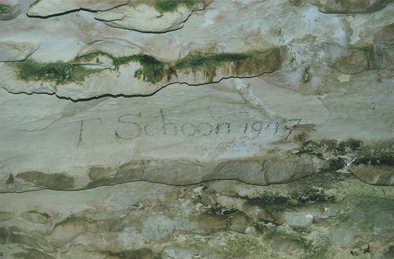 Above: Schoon’s signature on the wall of a rock shelter in the Valley of the Moa, Craigmore. Photograph by Michael Dunn, 2003. Michael Dunn collection