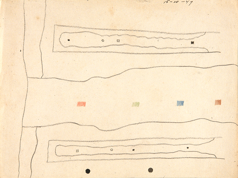 When he wasn’t staring at his own navel, Schoon occasionally looked up long enough to recognise the best work among his peers. Well before they made their most important paintings, Schoon told the curator and soon-to-be art dealer Peter Webb to “[w]atch out for Walters and McCahon…They are going to do some real painting in this country.” His eye is also what also allowed him to recognise the huge potential in the drawings of Rolfe Hattaway, a schizophrenic patient Schoon encountered while working as an orderly. Schoon showed the drawings to Walters, who, in retrospect, shamelessly ripped them off (as one senior artist put it to me recently, Walters just coloured in Hattaway’s compositions). Schoon also introduced Walters to Māori rock art, and arguably beat him to the draw with his own kōwhaiwhai-based paintings.
