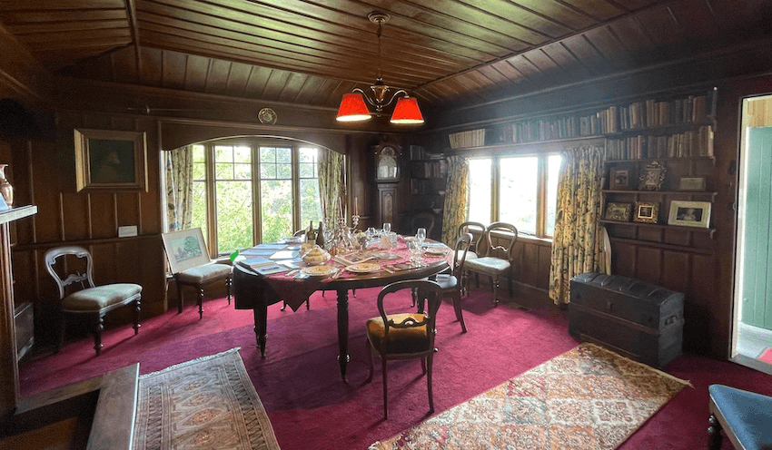 More and more details jump out as your eyes adjust. There are swords lining the walls, and a riding crop which Marsh used with her horse, Frisk. Our tour guide David tells us that she used to spend so much time galloping through the hills on Frisk that her mother sent her to a governess to try and make her more ladylike. “It didn’t work,” he smirks. On the table is a copy of one of Marsh’s many journals, this time dating back to 1907. “Hip hip hooray it is my birthday,” she wrote. “I got a lot of things, but the best is a watch.”