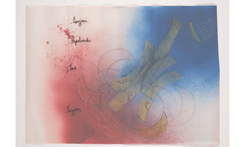 Maybe this is the caution of the book’s subtitle? Careful, you might write a couple of hundred words pondering the meaning of a building you’ve never seen in person! Yet this is exactly how I have been describing this book to others: deeply researched and beautifully designed but very conscious that it is adding to Rewi’s legacy by being so manifestly inspired by his work. This inspiration is an implicit invitation to the reader to also become inspired. Included in the book are responses from writers Samuel Te Kani (Ngāpuhi, Ngāti Porou), Gina Cole (Fijian, Pākehā), and essa may ranapiri (Ngaati Wehi Wehi, Ngaati Raukawa-ki-te-Tonga, Te Arawa, Ngaati Puukeko, Ngaati Takataapui, Clan Gunn) who were sent drawings from Rewi’s archive to create to.