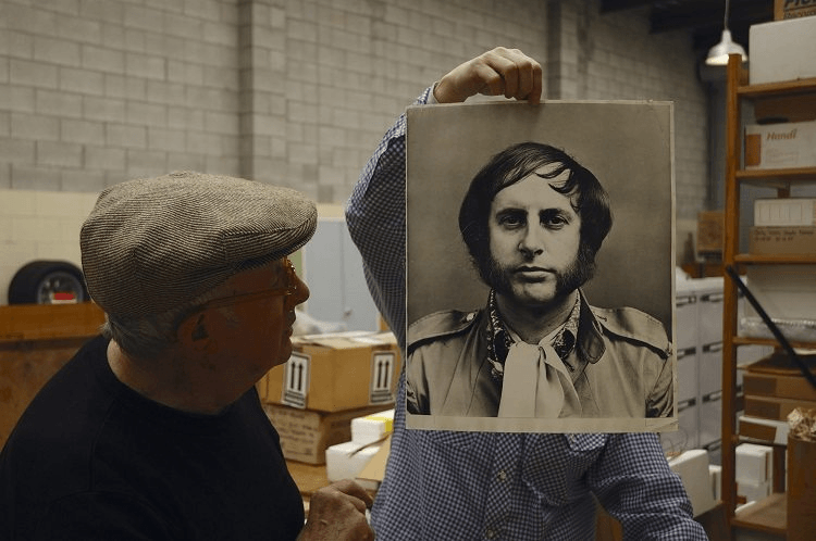 ‘Billy Apple in his warehouse looking at a self-portrait from 1969 (photograph by Ira Mazer), Auckland, 2011. Courtesy of the Billy Apple® Archive. Photograph by Mary Morrison’