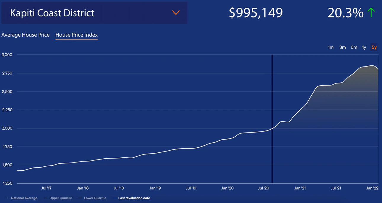 That time saving and the increased possibility of commuting saw prices double on the Kāpiti Coast over the last five years, while residential property prices rose 155% in the Horowhenua District. Both were faster than the 72.7% seen in Wellington City.