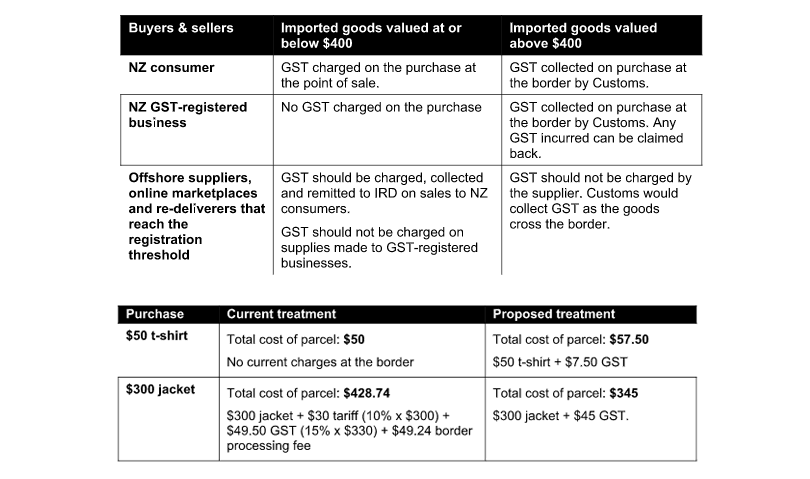 Consumers will likely pay more for their goods. But the government says that in some cases, goods will actually be cheaper because of the removal of Customs tariffs, border security fees and biosecurity cost recovery charges.