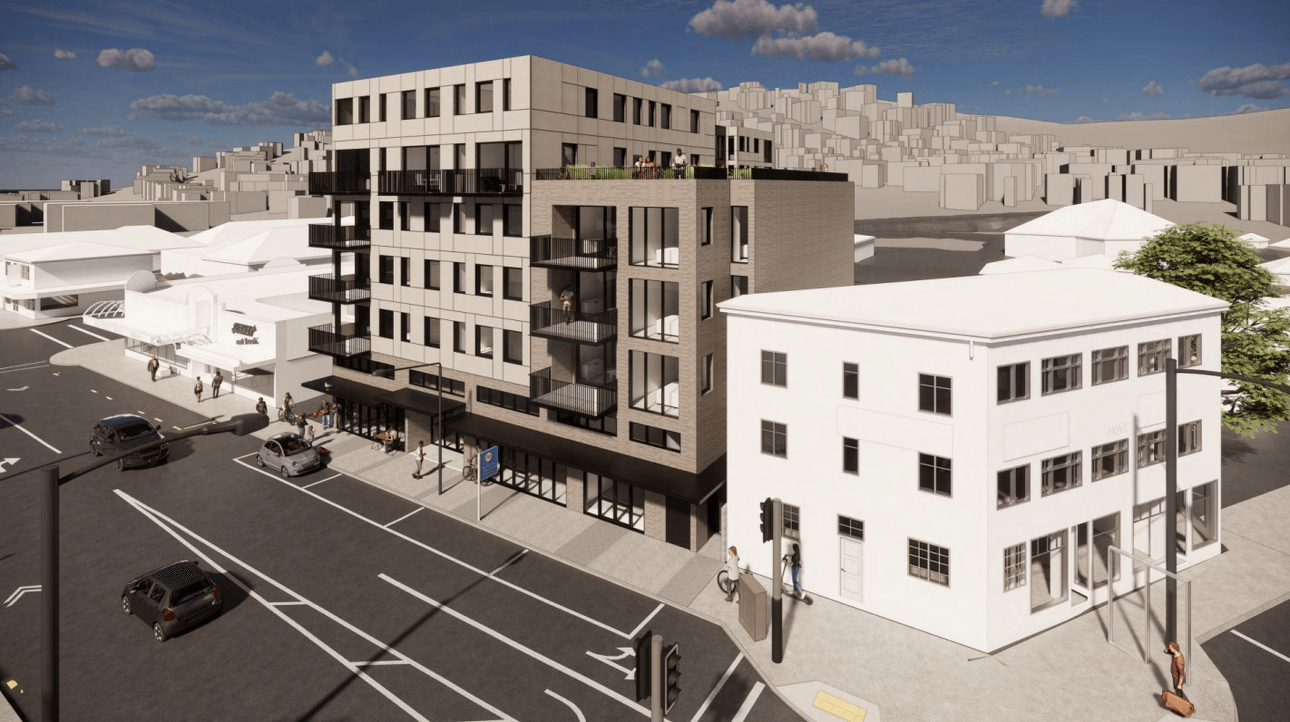 Under the old District Plan, Rhodes Street was a character precinct, meaning homes built before 1930 (such as the one at 28 Rhodes Street) couldn’t be demolished without an extensive consenting process, and new developments couldn’t be more than two storeys tall. Under the new District Plan, Rhodes Street is a high-density zone allowing buildings up to six storeys tall, making developments like this possible.