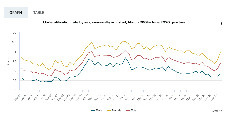 Today’s June quarter labour market statistics reflect how the lockdown has disproportionately impacted the women in the workforce. The female underutilisation rate shot up to 14.9% from 12.7% – a 29,000 increase – while the unemployment rate rose to 4.4% – a 1,000 increase. The numbers for men were more modest.