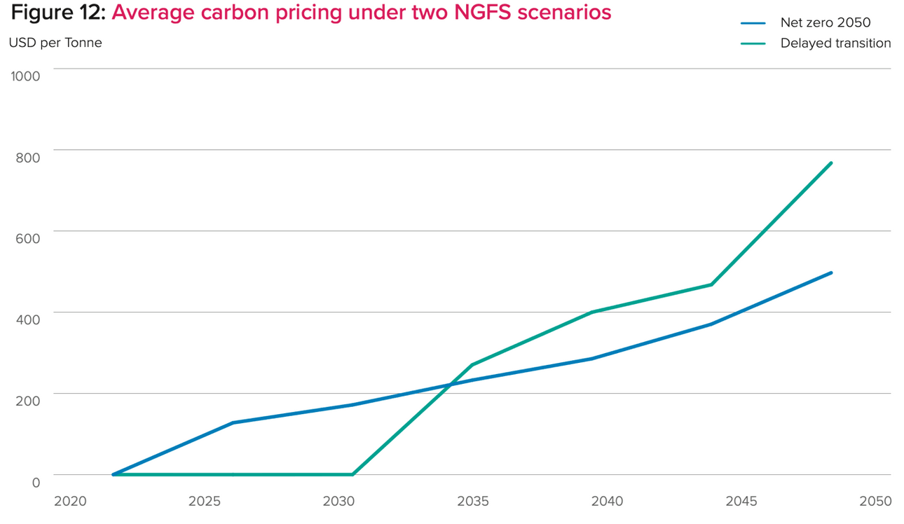 Finally, this Reserve Bank chart shows forecast carbon prices under two transition scenarios, suggesting a delayed transition could lump company-killing carbon costs on firms that don’t reduce their emissions, or on banks that finance them. (NGFS stands for Network of Central Banks and Supervisors for Greening the Financial System, the global body that undertook this modelling).