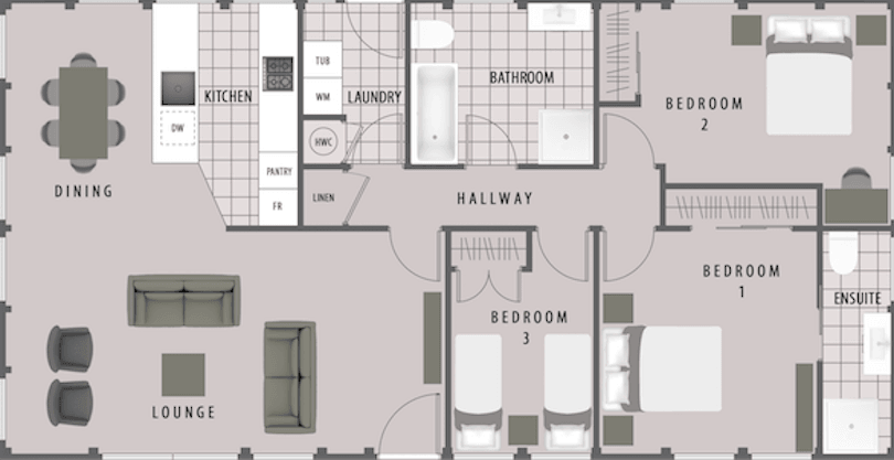 You can do a three-bedroom, 100 square metre house for probably about $240,000, and you can do a four bedroom house for less than $300,000. We do smaller houses and they seem quite expensive because they have everything in them that a bigger house has got. So when you increase the size of the house, you’re getting more floor area but you’re not necessarily putting another kitchen in, another bathroom and so the overall cost starts to come down.