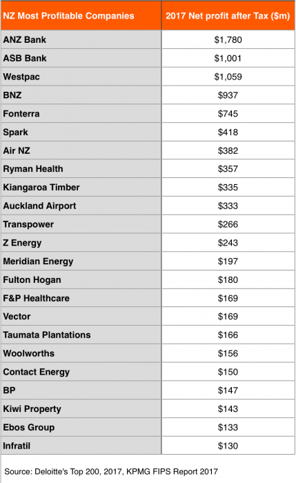 - Ranking New Zealand company profitability, the Australian banks sit at 1, 2, 3 and 4, all well ahead of Fonterra, Spark and Air New Zealand