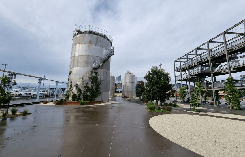 Patrick Clifford, principal at Architectus, which worked on much of the quarter’s design and the master plan, says keeping the silos is just one of many instances where a natural decision to retain a piece of infrastructure added so much to the end product.