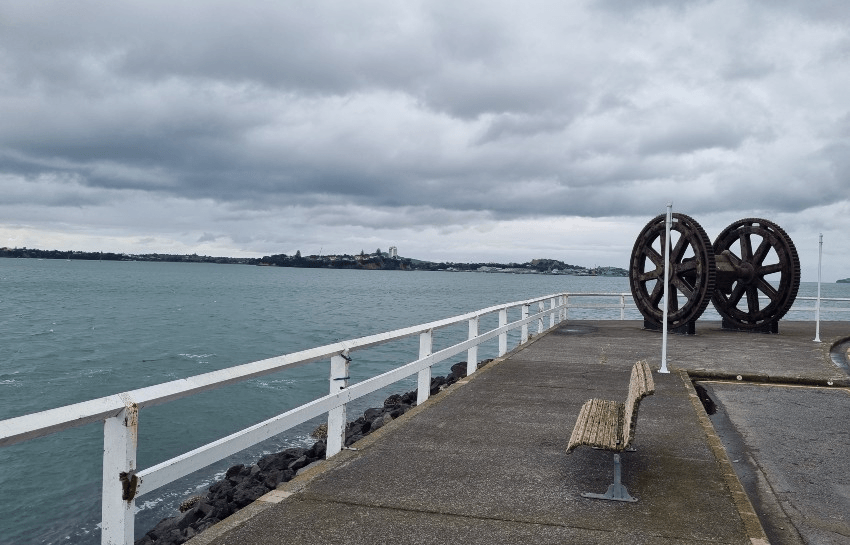 Mark’s right; there’s nothing but the red bill gulls, the fresh salt air, and the green Waitematā lapping at the wharf.
