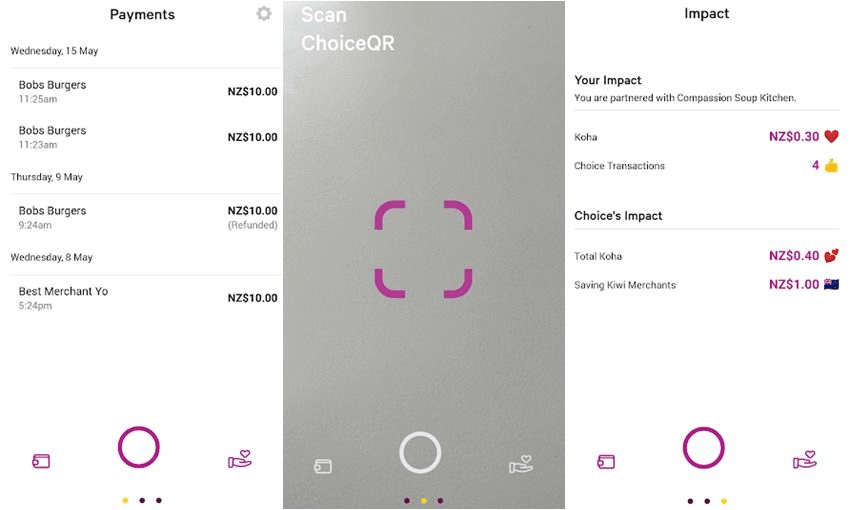 Choice is a payments system that allows anybody to pay with their phone rather than a bank card. They scan a QR code on the terminal of the counter of the store, reducing the merchant’s transaction fee from what can be a 3% fee all the way down to a 10 cent flat rate fee.