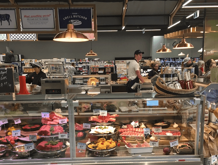 Look around and suddenly everything is different. It’s the supermarket reimagined as an lifestyle. A machine slices ham next to a bunch of fresh sushi next to a display of fancy donuts. There’s a bakery operating, and a barista, and the whole thing is in constant motion, a kind of manufactured bustle, seemingly intended to evoke the New York delis we’ve seen in a million movies.